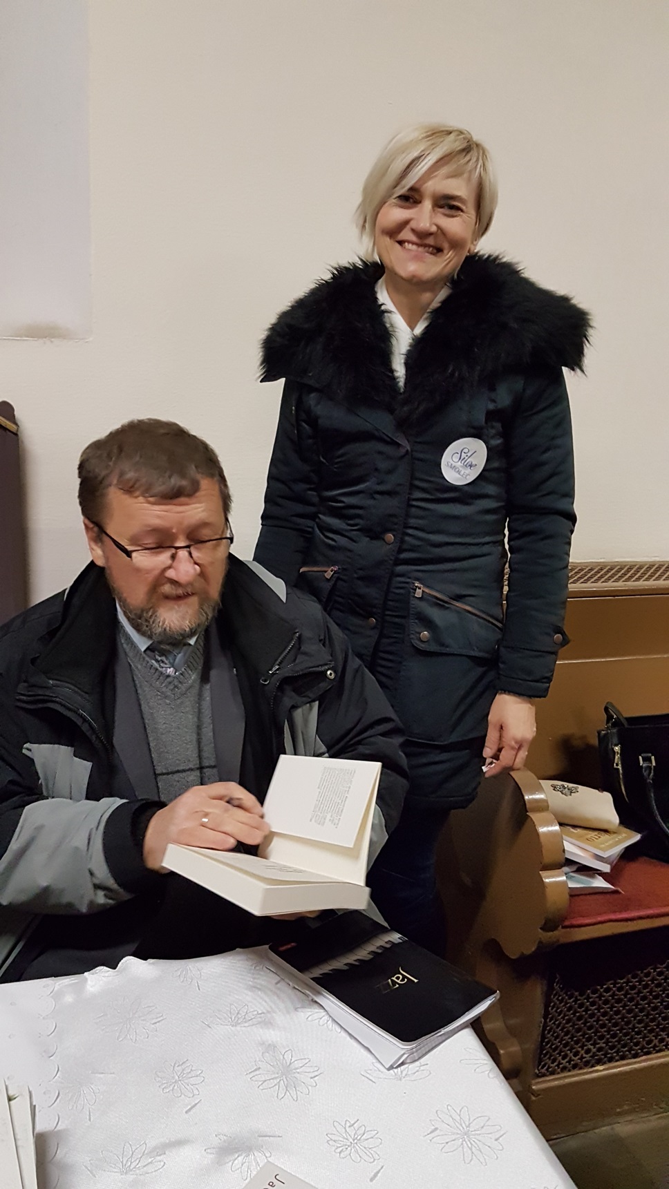 Za nami spotkanie z wyjątkowym człowiekiem, bo wielkiego formatu i kto przyszedł posłuchać ten wie, że nie ma w tym stwierdziłdzeniu przesady. Pan Jacek Pulikowski wraz z małżonką Jadwigą byli u nas niecałą dobę, a emocje wciąż nie opadają, bo kontakt z nimi pozostaje długo i głęboko w pamięci. To, co szczególnie dotyka, to spora wiedza, ogromne doświadczenie i niesamowity trud pielgrzymowania, by te cenne słowa dotarły do jak największej grupy ludzi. I choć Państwo Pulikowscy nie praktykują już wystąpień przed tak małym audytorium (w Katedrze Warszawsko – Praskiej w ub. tygodniu było ponad 1000 osób – a u nas było sporo miejsc wolnych…) to zgodzili się zawitać i do naszego małego (aczkolwiek wielkiego duchem) Smolca. Sama konferencja trwała trochę, ale nikt chyba nie czuł znużenia, bo jeszcze po jej zakończeniu przez dłuższą chwilę kościół się nie wyludniał. Tym bardziej, że można było nabyć książki i płyty autorstwa naszego gościa i uzyskać dedykację – przemyślaną i konkretnie dedykowaną.
