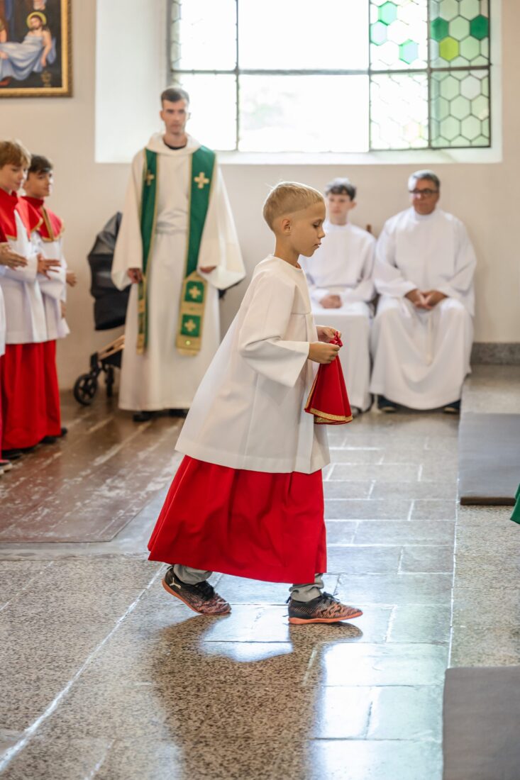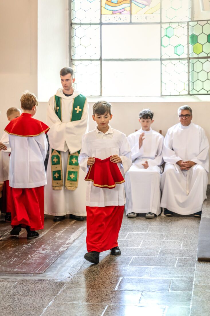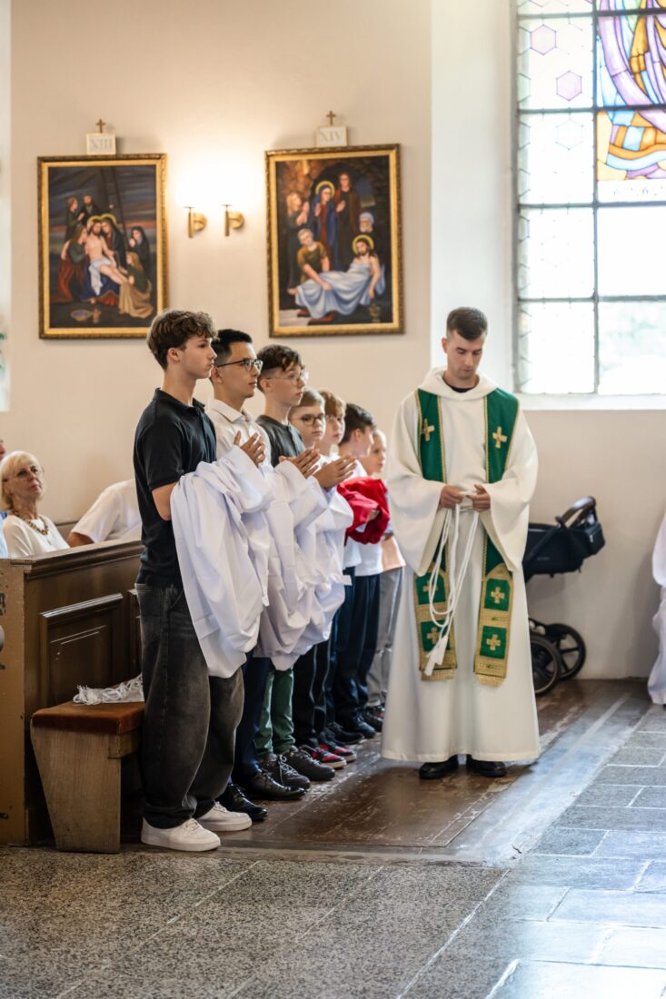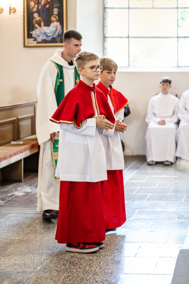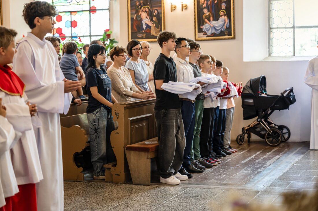 W niedzielę 31 sierpnia podczas Mszy św. o godz. 11.30 odbyła się promocja ministrantów starszych i młodszych. Trzech starszych i czterech młodszych chłopców pod okiem ks. Marcina i przy wsparciu obecnych członków Liturgicznej Służby Ołtarza dołączyło do służby przy ołtarzu Pańskim. Niech Chrystus, Najwyższy i Wieczny Kapłan, błogosławi na tę zaszczytną służbę i na całe ich życie.
