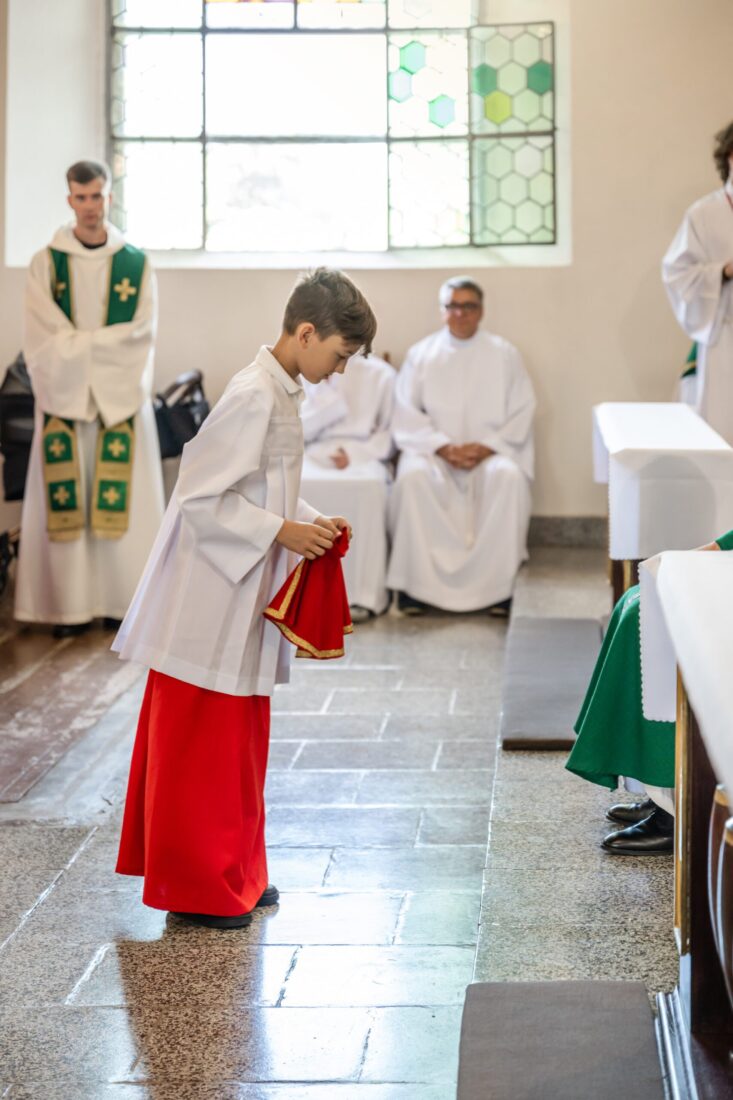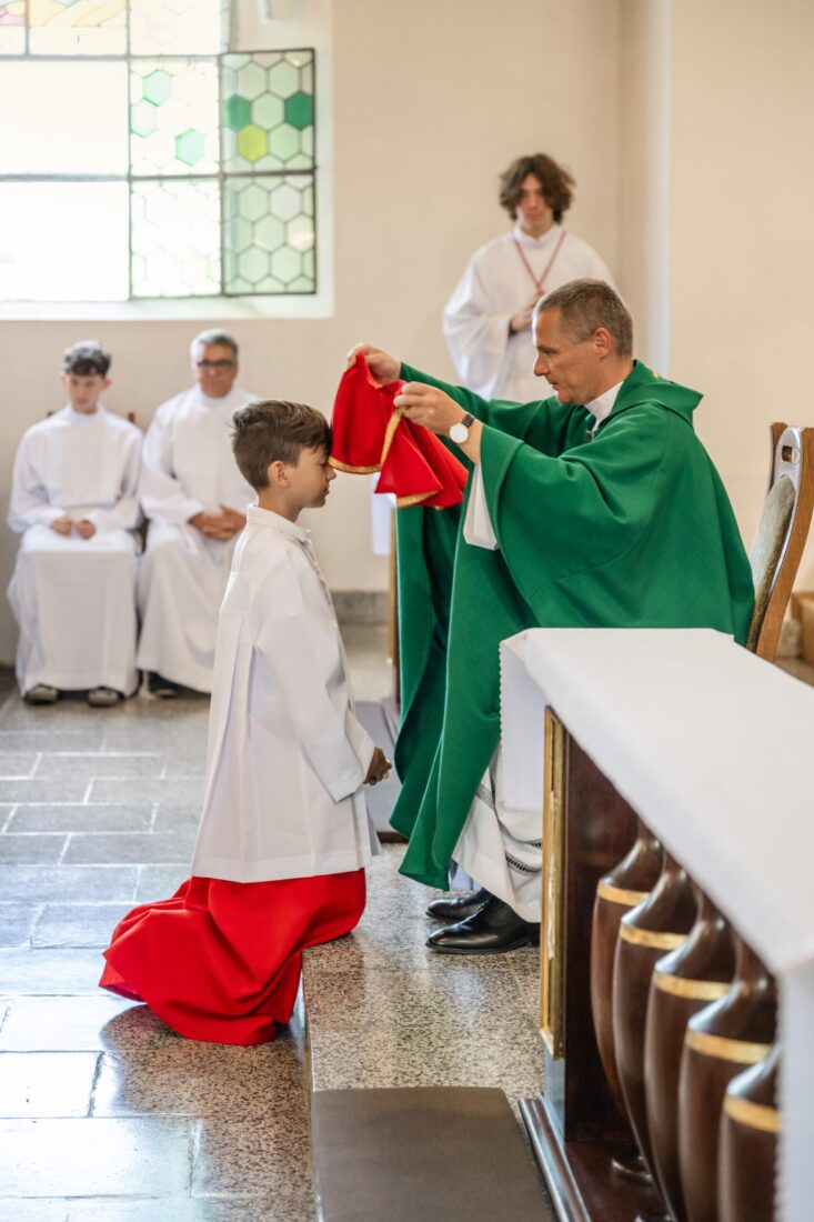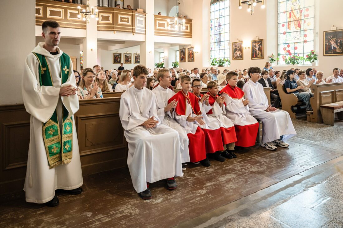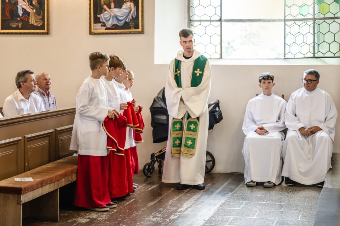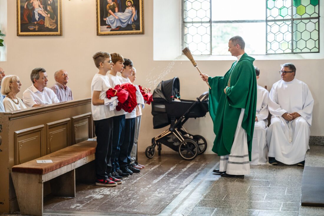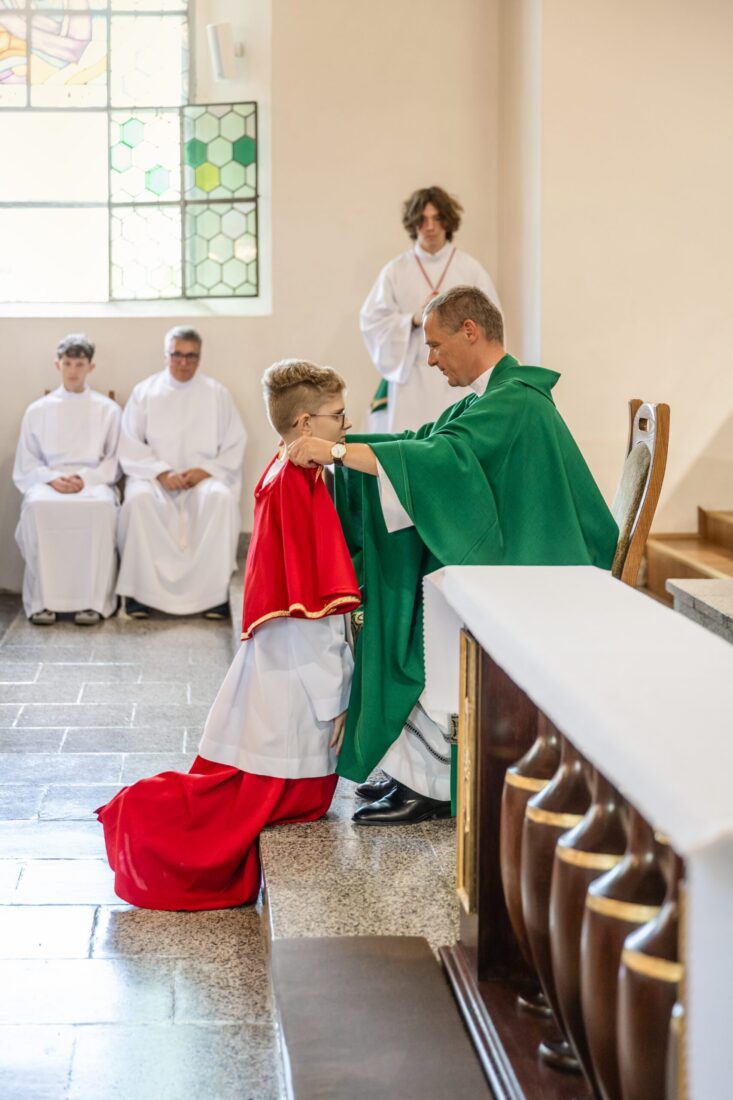 W niedzielę 31 sierpnia podczas Mszy św. o godz. 11.30 odbyła się promocja ministrantów starszych i młodszych. Trzech starszych i czterech młodszych chłopców pod okiem ks. Marcina i przy wsparciu obecnych członków Liturgicznej Służby Ołtarza dołączyło do służby przy ołtarzu Pańskim. Niech Chrystus, Najwyższy i Wieczny Kapłan, błogosławi na tę zaszczytną służbę i na całe ich życie.